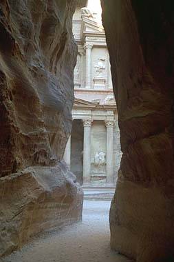 style, cut out directly in the pink rock in the hidden city, Petra.