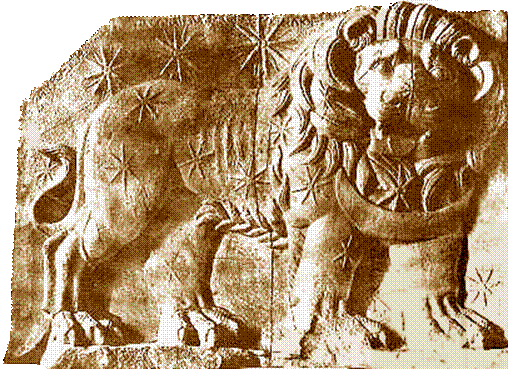King Antiochus I, in the Taurus Mountains. The time of this king’s coronation (7th July, 63 BC) is visually noted here. Above the lion’s back: Jupiter, Mercury, Mars