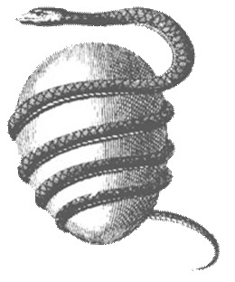 Serpent hatching the World Egg. From this the Basilisk was hatched