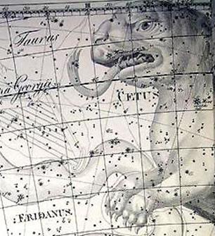 possible 35 specific places on the ecliptic circle. In India the tradition concerning celestial subjects contains many elements of the ancient Babylonian tradition. A very important element of the teachings of the stars in India was the moon’s descending node, being the above mentioned celestial point of where the lunar orbit is crossing ‘downwards’ through the ecliptic. In all known tradition in India this nodal point was called Ketu - this, however, was an ancient Babylonian word meaning ‘the underworld’. This concept was symbolized by a sea monster in the shape of the constellation The Whale (placed close to the beginning of the Aries constellation), and was known too by the Greeks, who - likewise inspired by the Babylonians’ name for it, Ketu - also named it Cetu(s). (However, the Egyptian-Greek astronomer, Ptolemy, and few Roman writers called it Balena or Belua - also meaning ‘monster’). In those days