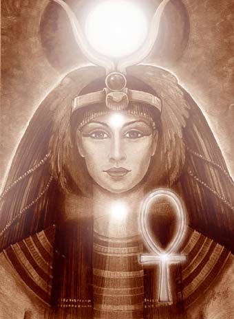 Ø Der er ingen tvivl om, at disse åndelige mål korresponderer med »genopstandelsens legeme« i kristendommen, men her forudsættes en fysisk død. I disse doktriner dannes det åndelige legeme først efter aflæggelsen af det fysiske legeme, men i de egyptiske tekster fremstilles døden som et tilbud om transformation – ikke som en forudsætning. Isis og jomfruundfangelsen af Horus Det mytologiske fundament for stjerneindvielserne er adskillige legender associeret med Isis. Det begynder med hendes magiske genopbygning af Osiris, efter at hun fra visdomsguden Tehuti havde erhvervet sig den nødvendige viden om, hvordan hun kunne fylde ham med liv. Denne proces indebar den magiske omfavnelse og overførslen af »Sa« (ånd) til hans livløse legeme. Idet hun udførte denne magiske handling, undfangede hun på mirakuløs vis sønnen Horus. Solgudens hemmelige navn (kraft) Herefter beretter en optegnelse om hendes erhvervelse af solgudens hemmeligste navn – en kraft der sikrede Horus’ arv til soltronen. Efter at have fået tilladelse til at svække Ras styrke ved hjælp af en gift, modtog hun det kraftfulde navn fra ham mod til gengæld igen at ophæve giftens virkning. Navnet, som hun fik overdraget, gav hun videre til sin søn, som gav det videre til sine efterkommere. Neith og Isis – de to jomfruer I det gamle Egypten var doktrinen om jomfrufødsel forbundet med både gudinden Neith og Isis. Neith opstod af sin egen substans, og hun var derfor hverken mand eller kvinde. Og da hun skabte livsspiren til menneskeracen, besad hun samtidig kraften til at dele den i de to køn. Men i Osiris-mysterierne erhvervede Isis de maskuline og feminine principper i en magisk handling, som gjorde det muligt for hende at undfange Horus uden at hendes mand var til stede. Disse mytiske ingredienser repræsenterer tydeligvis metafysiske processer. De foregår konsekvent i den sfære af transformation, som beskrives i pyramideteksterne. I disse tekster skænkes kraften til at give liv af Isis i form af Sirius, som forenes med den indviedes kraft som »kvinden som oplyser mørket«, og fremskynder forvandlingen fra jordisk til guddommelig eksistens: