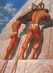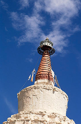 Virkningsgraden Når en stenblok på 6,3 tons hæves 250 m på tre minutter, svarer dette til en effekt på 117 hestekræfter. Synligt implicerede i arbejdet var 24 trommeslagere og 6 trompetere, eller i alt 30 mand. Hvis et menneske kortvarigt frembringer 0,75 hk, er dette en meget god præstation. Forudsætter vi, at munkene var i stand dertil, får vi en samlet effekt hos de arbejdende munke på 22,5 hk. Her stemmer beregningerne altså ikke længere. Man kan da spørge, om de omkringstående øjensynligt ikke arbejdende munke var arbejdsløse, eller om også de var implicerede og nødvendige til at levere de resterende ca. 100 hk. Når man engang får lejlighed til at se filmen, der blev optaget, vil problemet kunne analyseres mere indgående, end det er muligt ud fra de for øjeblikket foreliggende oplysninger. Det er også tænkeligt, at munkene, der betjente instrumenterne, kunne levere en ekstraordinær kraftpræstation. En løber kan nemlig i løbet af de få sekunder, et 100-meter løb varer, præstere op til 4 hk, og en vægtløfter præsterer ca. 3 hk. Med en sådan kraftindsats frembringer de 30 munke 90–120 hk, eller netop det, som er nødvendigt. En yderligere forklaring kunne være, at munkene med deres instrumenter og hvirvelfrembringende redskaber åbner en – lad os sige ventil – til en kraftkilde, og så behøver der ikke længere at foreligge overensstemmelse mellem tilført og afgivet energi.