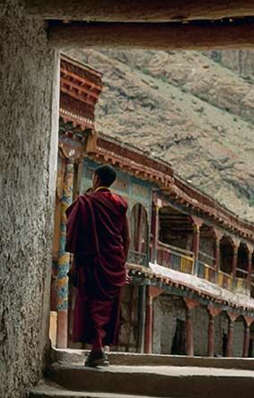 Hun besøgte også Kounboum-klosteret, som tidligere var blevet besøgt af munken Huc. Det interessante træ var nu omgivet af en 12–15 meter høj bygning. Blade, der faldt fra træet, blev samlet op og uddelt til pilgrimme. Kounboum ligger i distriktet Amdo eller Chamdo nær grænsen til Kina, og folk fra den nærliggende kinesiske Kansu-provins forsikrede hende, at de på to endnu eksisterende ss'Ku'bum-træer havde læst ordene »Aum mani padme hum«. Alexandra David-Neel bruger megen plads på at skildre munkenes hårde uddannelse, der undertiden gør dem vanvittige og engang imellem medfører døden. Når en adept for eksempel gennem tre år har opholdt sig i et fuldstændig mørkt rum, hvor ikke den mindste lysstråle kan slippe ind, kan det tage ham flere måneder at vænne sig til lyset igen. Man begynder da med at lade ham se lys gennem et millimeterstort hul i en uges tid, hvorefter hullet udvides gradvist. Hun beretter også om budbringerne, der løber under hypnotisk påvirkning. Herom senere.