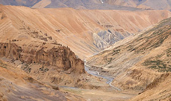 løfter tunge stenblokke Ved klostret lå en eng, der svagt skrånende førte ned til den forbiløbende flod, og mod nordvest rejste der sig høje bjergvægge. Højt oppe på bjergvæggen – cirka 250 m fra jordoverfladen – var der en grotteagtig hulning, og foran grottens åbning var man ved at bygge en barriere eller mur. De munke, der arbejdede deroppe, kunne ikke komme op ad den stejle klippevæg, men blev hejset ned til deres arbejdssted med tove fra klippetoppen, der lå cirka 40 m over grotten. Toppen kunne nås ad anden vej. Til den nedenfor liggende eng blev der slæbt store stenblokke frem. Siderne var cirka 1,5 m og de var cirka 1 m høje. De lå på en slags »slæder«, der blev trukket af yak-okser. Hvor disse store blokke blev udhugget eller på hvilken måde, vidste Jarl ikke. Midt på engen, et par hundrede meter fra foden af den stejle bjergvæg, var der en horisontal plansleben klippeflade, hvori der var udhugget en skålformet fordybning. Den var cirka 1 m i diameter og 15 cm dyb. På den planslebne flade, tværs over den skålformede fordybning, placerede munkene en stenblok, der skulle løftes eller rettere slynges 250 m op til klippeafsatsen foran grotteåbningen. Hver gang en stenblok landede deroppe, hørtes et kraftigt bump, og skærver og grus føg omkring blokken. En del blokke knustes, og munkene deroppe fjernede så resterne ved at vælte dem ned ad bjergvæggen. Fem til seks blokke kunne løftes op i timen. Jarl overværede, hvorledes 5–6 blokke løftedes op, og filmede to transportkast. Inde i klosteret kunne Jarl, efter at han havde set det hele, med mellemrum høre den dumpe lyd fra klippeblokkene, når de landede på afsatsen. Han var først fast overbevist om, at hvad han havde set, skyldtes dygtig massehypnose, men de film, han havde optaget, viste, at det ikke var tilfældet. I en afstand af 63 m fra den centrale skålformede fordybning med den derover hvilende klippeblok (se fig. 1) var der opstillet instrumenter i et cirkelafsnit, der dækkede 90 grader. Der var 19 instrumenter, og alle var anbragt med 5 graders indbyrdes afstand inden for cirkelafsnittet. Alle instrumenterne befandt sig altså i en afstand af 63 m fra stenblokken. Radius i cirkelafsnittet blev omhyggeligt opmålt ved hjælp af et læderbånd med knuder. Instrumenterne bestod af 13 trommer og 6 trompeter. 8 trommer var store, 4 mellemstore og en enkelt meget lille. Trompeterne var alle af samme størrelse og form. Alle trommerne var ca. 1,5 gange så lange som deres diameter. I den ene ende var de forsynet med en bund, mens de var åbne i den anden ende. Alle instrumenterne var anbragt med den åbne ende rettet lige mod den stenblok, der var anbragt i cirklens midtpunkt. Regnet fra den ene yderkant til midten var grupperingen i afsnittet sådan: først 1 stor tromme, så 1 trompet, derpå 2 store trommer og 1 trompet, dernæst 1 stor og 1 mellemstor tromme, så igen 1 trompet og endelig 1 mellemstor tromme og den lille tromme. Denne sidste var anbragt i afsnittets midte, og placeringen af instrumenterne på begge sider af denne midtertromme var symmetrisk. De store trommer var ca. 1 m i diameter og 1,5 m lange. De mellemstore trommer var ca. 0,7 m i diameter og 1 m lange. Den lille tromme var kun 20 cm i diameter og 30 cm lang. De store og mellemstore trommer var hver for sig ophængt i to galger. Til dette formål var trommerne forsynet med fire øskener, to på hver side, hvorfra læderremme løb op til galgernes tværribbe foroven. Gennem den ene sides øskener løb en sigtestang, sådan at trommens munding kunne rettes nøjagtigt ind mod stenblokken. Da trommerne var temmelig tunge (de bestod af 3 mm-plader i 5 sektioner med ca. 7 mm tykke samlinger og vejede omkring 150 kg), måtte man for at rette dem ind og for at kunne bevare sigtet mod stenblokken, når den hævede sig, flytte den bageste galges ben tilbage. Galgerne kom herved til at hælde stærkere og stærkere, og det samme gjaldt trommerne, idet deres bageste ophængningspunkt sænkedes mod jorden. Se billedet i fig. 1.